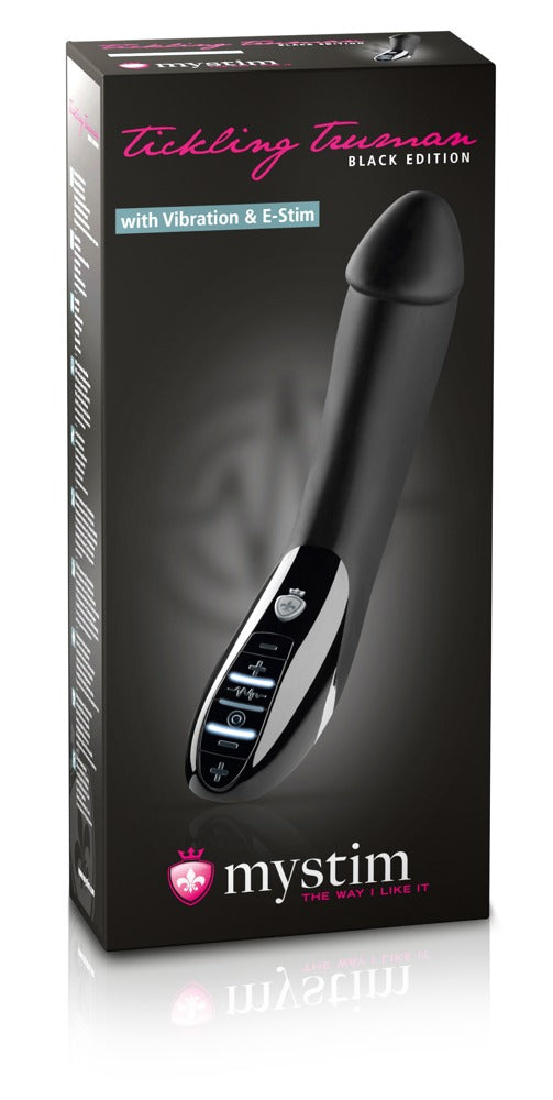 Vibromasseur rechargeable qui stimule par vibrations et courants d'électrostimulation (sans appareil à courant de stimulation). Aperçu de ses fonctions : 8 programmes de vibrations en 5 niveaux d'intensité, 5 programmes E-Stim en 10 niveaux d'intensité et 1 programme d'entraînement du plancher pelvien. Tickling Truman dispose de 2 moteurs de vibration extra puissants et silencieux. 27 cm de long, Ø 3,5-4,3 cm. Câble USB Mystim Magnet Charge inclus. Matériau : silicone platine.