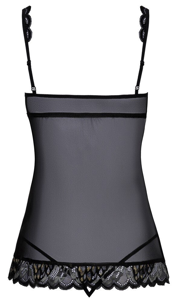 Babydoll & string in een set van kissable. De babydoll is gemaakt van delicate powernet en prachtig kant. Het is zacht en rekbaar voor een comfortabele pasvorm. De korte babydoll is open aan de voorkant en wordt gesloten met een clipsluiting die verborgen zit onder de decoratieve satijnen strik. De beugelcups en verstelbare bandjes garanderen een perfecte pasvorm. De chique kleine string is ook gemaakt van prachtig kant en is extreem verleidelijk omdat het twee smalle rekbare bandjes heeft die samenkomen in het kruisgedeelte.