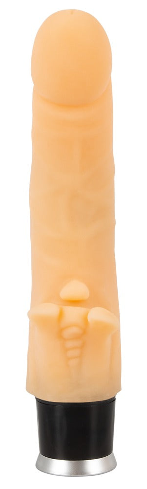De realistische, flexibele Flame Vibe van Nature Skin heeft krachtige vibraties en een vlamvormige clitorisstimulator op de schacht. Hij is gemaakt van Nature Skin-materiaal – het voelt als echte huid. 8 vibratiestanden met één druk op de knop.