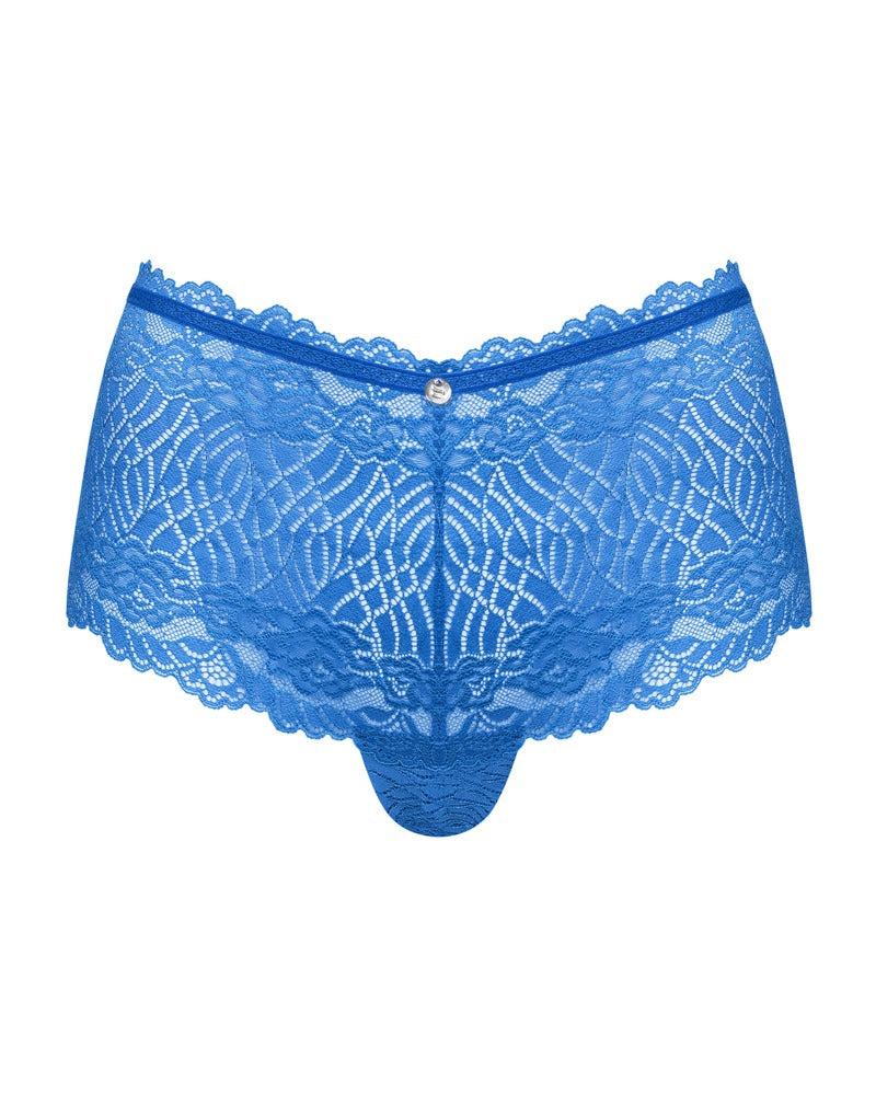 Fancy kant, sierlijk blauw, boven de billen gesneden, fenomenaal glanzend ornament en een charmante, vrouwelijke snit! Hoe kun je dit allemaal weerstaan? Voeg een doorschijnend patroon toe – je weet al dat je dat niet kunt. Er staan je lange en hete nachten te wachten, en nog meer liefdesverrukkingen wachten op je.