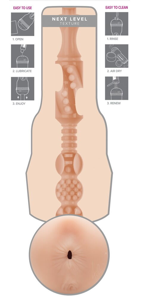 Masturbator Adriana Chechik Next Level from Fleshlight with an original replica of erotic star Adriana Chechik's anus hole. The various textures inside Adriana's tight anal canal feel amazing and are perfect for intense, orgasmic massages during a hand job. The sleeve is made out of soft, skin-like Superskin material. Adriana's signature is also next to the opening. The masturbator can be easily removed from the discreet, non-slip case for cleaning. There is also a lid for the case as well.
