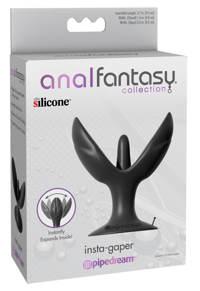 The Insta-Gaper has a comfortable tip that can be inserted easily. Once the plug has been inserted, it opens out like a flower and pleasantly fills the inside of the anus. The soft surface means that it slides in easily and the strong suction cup makes hands-free fun with this anal stretcher possible.