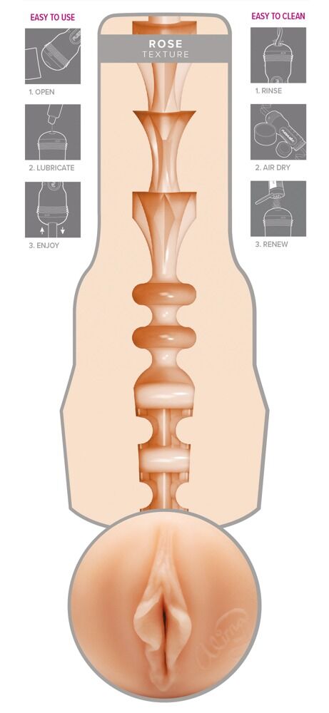 Masturbator Alina Lopez Rose from Fleshlight with a realistic replica of the erotic star's vulva/vagina. The various textures inside Alina's tight pleasure canal are very close to the original and are perfect for intense, orgasmic massages during a hand job. This model has the Fleshlight structure Rose and an extra tight hole.