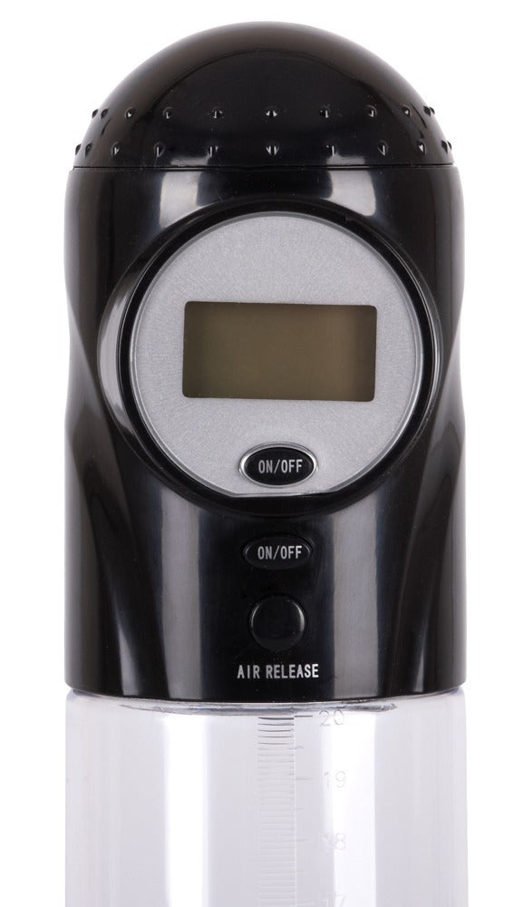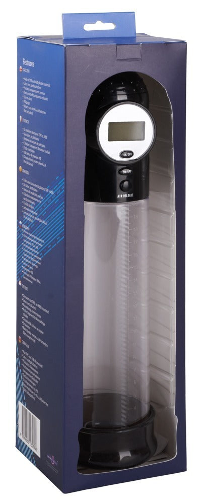 Auto Pump by Seven Creations with a transparent cylinder and 20 cm measuring scale. Quickly and conveniently generates an effective vacuum at the touch of a button to swell the penis to its maximum size and shape. The Air Release Button ensures immediate pressure release. The pressure (psi) can be perfectly controlled on the display. The Auto Pump also works perfectly without switching on the display.