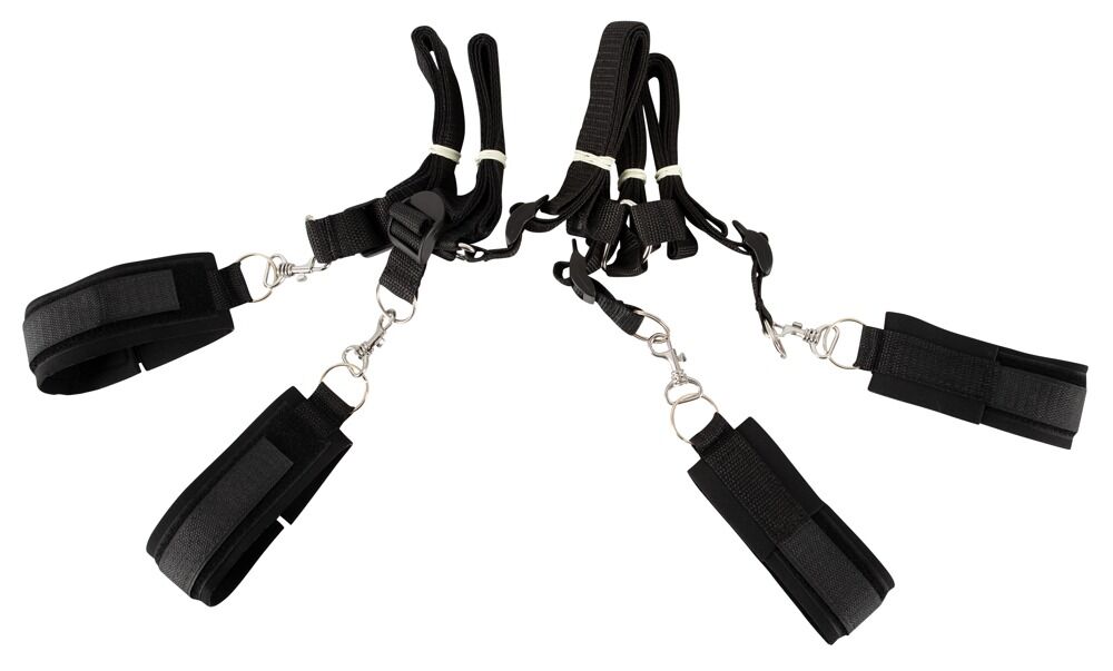The bed restraint kit has everything that is needed for restraining the whole body. It also turns the bed into a professional bondage playground. It doesn't matter whether the kit is used at home or on a naughty weekend away. The bed restraints fit perfectly underneath the mattress – neither bedposts or a bed frame are needed. The blindfold adds the exciting finishing touch!