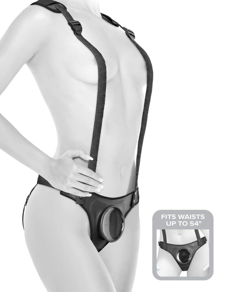 The comfortable strap-on harness Body Dock Strap-On Suspenders from pipedream is quickly put on ready for unlimited thrusting pleasure. The model has padded suspenders for a secure and comfortable fit even during the wildest action. The suspenders can be adjusted in length and even removed.