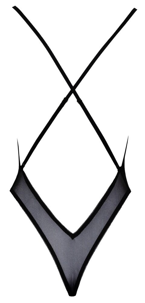 The very low-cut body from kissable is made out of delicate black powernet and elaborate floral embroidery in pink and purple. It is soft and stretchy which means that it is extremely comfortable to wear. The body also has adjustable criss-cross straps at the back.