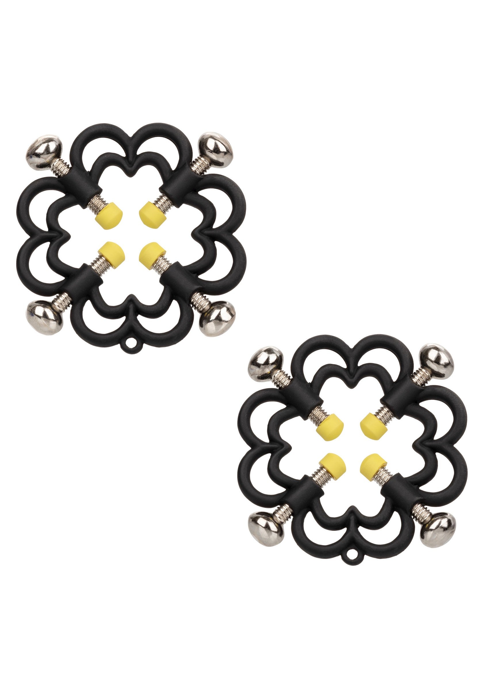 Elevate sensation and embrace endless pleasure possibilities with the Boundless Nipple Grips. The multi-use clamps are made to explore elevated sensation with the screw down 4-point press design and heavy-duty feel. Find what hits just right with the fully adjustable screw-down 4-point press, while the power grip cote tips hold tight for the thrill of a lifetime. Clamp the naughty grips to the nipple or anywhere on the body and enjoy every rush of pain and pleasure with each tug. The teasing clamp has fully adjustable 4 points of tension to stimulate anywhere on your body for playful teasing. As the tension tightens, the tingles intensify with every turn of the screw for the ultimate in nipple stimulation toys. These easy-to-use nipple teasers are great for everyone.