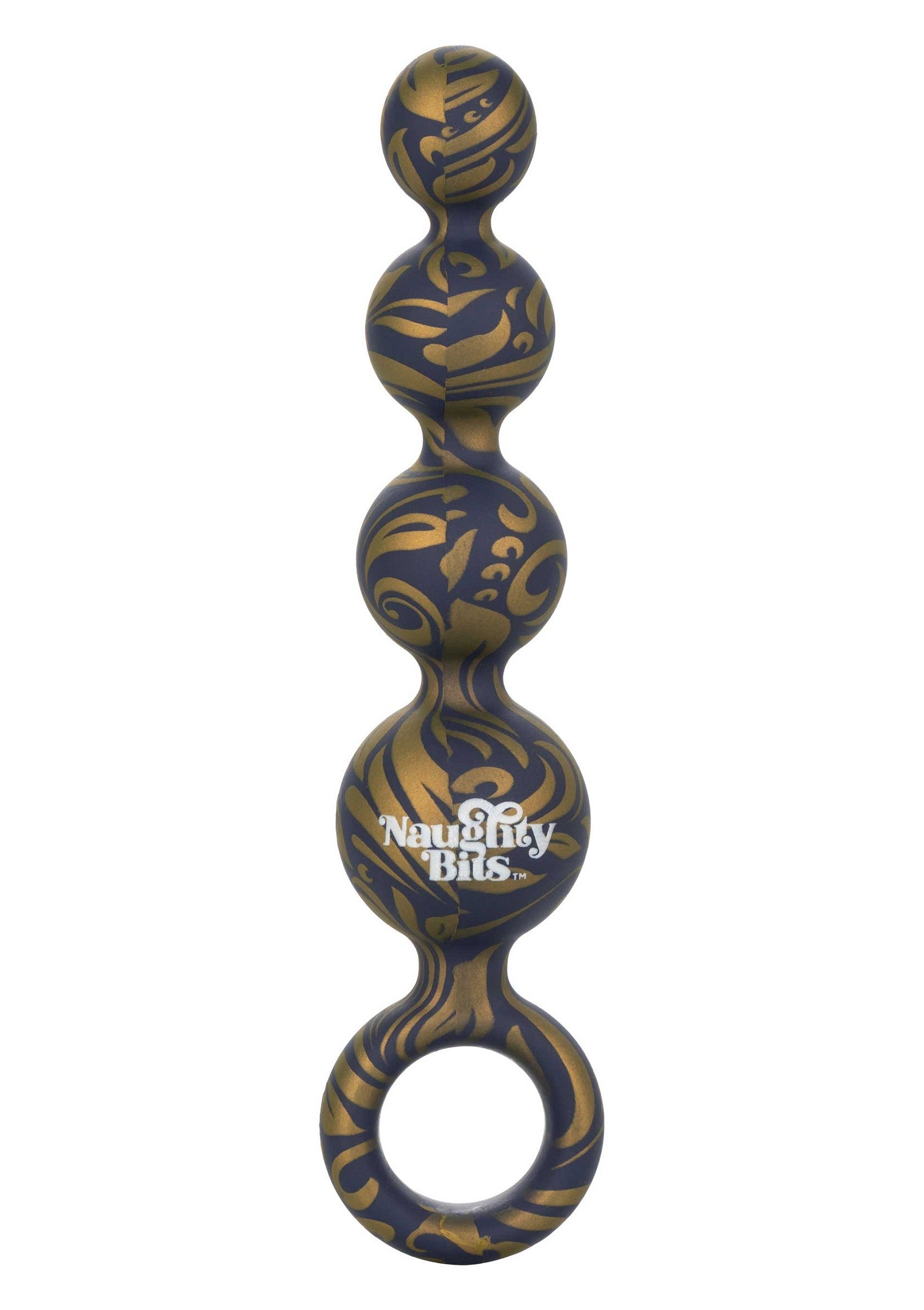 The Naughty Bits Butt Balls Silicone Booty Beads is made for all your anal needs with a plush silicone, tapered beads and easy retrieval loop. The petite plug has a sturdy o-shaped retrieval loop for comfortable insertion, thrilling stimulation and safe, gentle removal. Perfect for beginners and erotic experts alike, the tapered shaft increases in girth for intensifying pleasure. The Naughty Bits collection is made to stand out in any nightstand with eye-catching designs and orgasmic features. The ultra plush silicone and golden marbled pattern of this gorgeous anal probe will make even the most stylish lover smiling before and after.