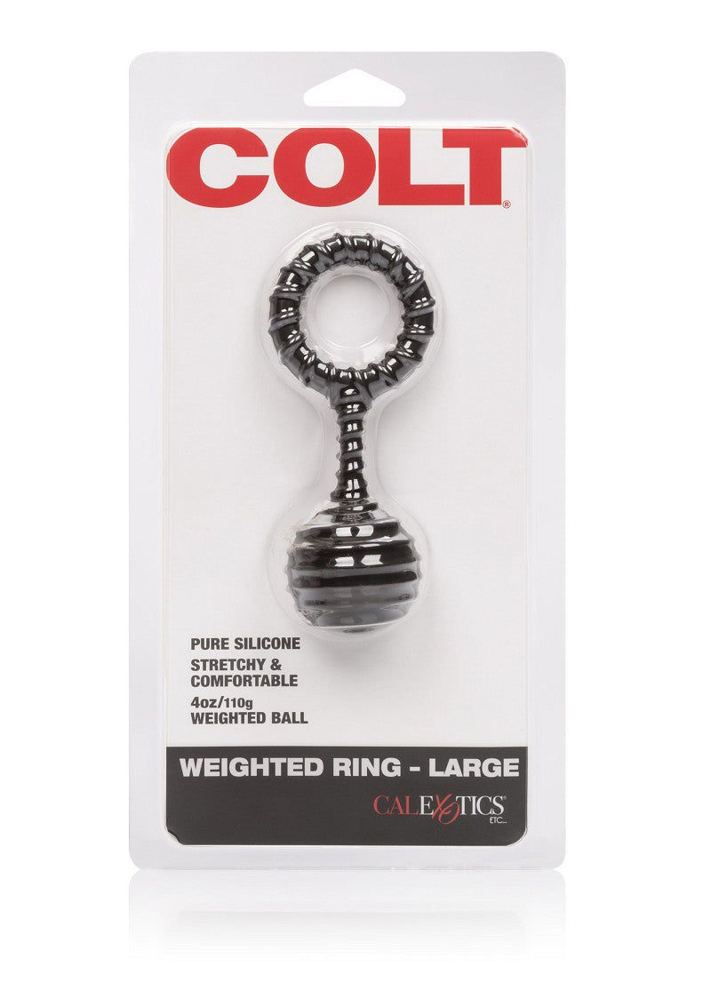The erotic sex toy innovators at CalExotics and the male-centric pleasure experts at Colt have partnered to create a line of sex toys for men dedicated to the masculine pleasure seeker. Whether you’re a bashful beginner or an erotic expert, Colt’s Weighted Ring is here to help you enhance your adventurous side. The sensationally weighted ball is connected to the stretchy, durable silicone cock ring covered in row after row of thrilling ridges. Our versatile penis ring is superb for everyone at any level of pleasure and those looking to length their pleasure tool. The comfortable male cock ring can be worn to effortlessly increase length or to turn up the heat with the erotic enhancement holding you tightly. The non-porous, hypoallergenic material pairs perfectly with your favorite water-based lubricants. Available in large. COLT Studio Group shares its unique vision of the masculine man with the world through photographic, film, video and a wide variety of all-male products. COLT Studio Group celebrates the erotic appeal of masculinity.The most trusted name in all-male erotic products is COLT. If the Look is Masculine, the name is COLT!