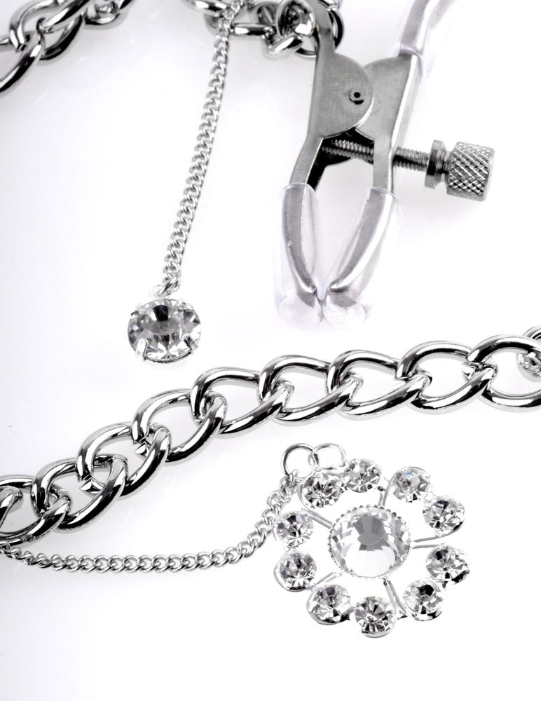 These nipple clamps are perfect for classy fetish games! The wearer can either enjoy sweet pain or slight pressure on the nipples because the clamps are easy to adjust. The decorative pendant on the little connection chain adds the finishing touch to the design. The exciting fetish fun can now begin.