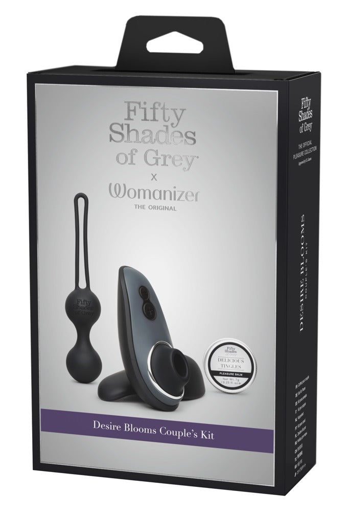 3-piece set Desire Blooms Kit from Fifty Shades Of Grey as a special edition in stylish FSOG colours. Includes a Womaniser Liberty, a Pleasure Balm and a love ball duo. The perfect trio for exciting solo adventures and inspiring love games for two - at home or on the go. All in a beautiful set box - the perfect gift!