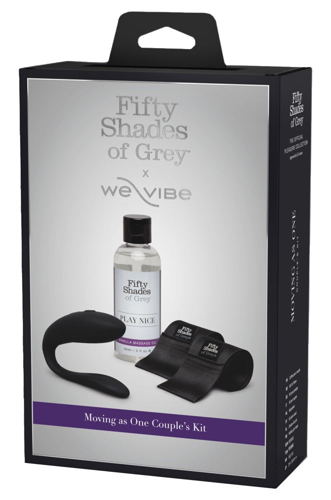 3-piece set Moving As One Kit from Fifty Shades Of Grey as a special edition in stylish FSOG colours. Includes a Sync Lite couples vibrator from We-Vibe, a pair of satin handcuffs and a high-quality vanilla massage oil. The perfect trio for exciting solo adventures and inspiring love games for two – at home and on the go. All in a beautiful set box – the perfect gift!