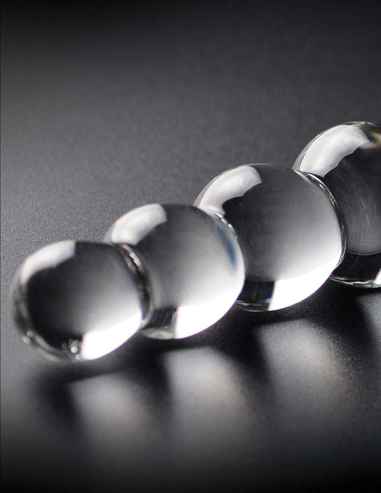 Beautiful straight glass dildo with 9 differently sized stimulating beads. The dildo can be warmed or cooled its water to provide especially exciting moments of pleasure. Mouth-blown quality glass. Odourless, anti-allergenic and very hygienic thanks to being easy to clean, even in the dishwasher. Transparent. 22.5 cm long, Ø 3.5 cm.