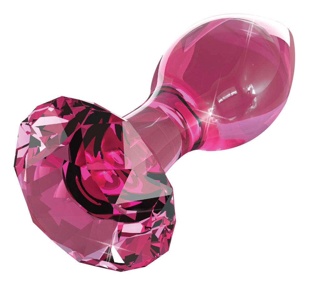 Cone-shaped pink butt plug with a stopper made out of hand-blown glass. The stopper is in the shape of a diamond. Odourless, anti-allergenic and very hygienic it's really easy to clean – it can even be put in the dishwasher. Tip: to increase the pleasurable feeling even more, it can be warmed up in warm water or cooled down in the fridge. The item will last a lifetime if it's looked after properly.