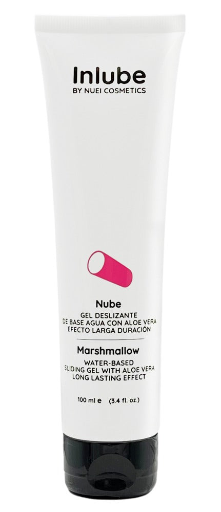 Lubricant Inlube Water-Based Sliding Gel Marshmallow from NUEI with nourishing aloe vera and sweet marshmallow flavour. Silky texture with exclusive long-term effect. The vegan formula is water-based and free of parabens, sugar and gluten. Compatible with latex, condoms and toys of all kinds.
