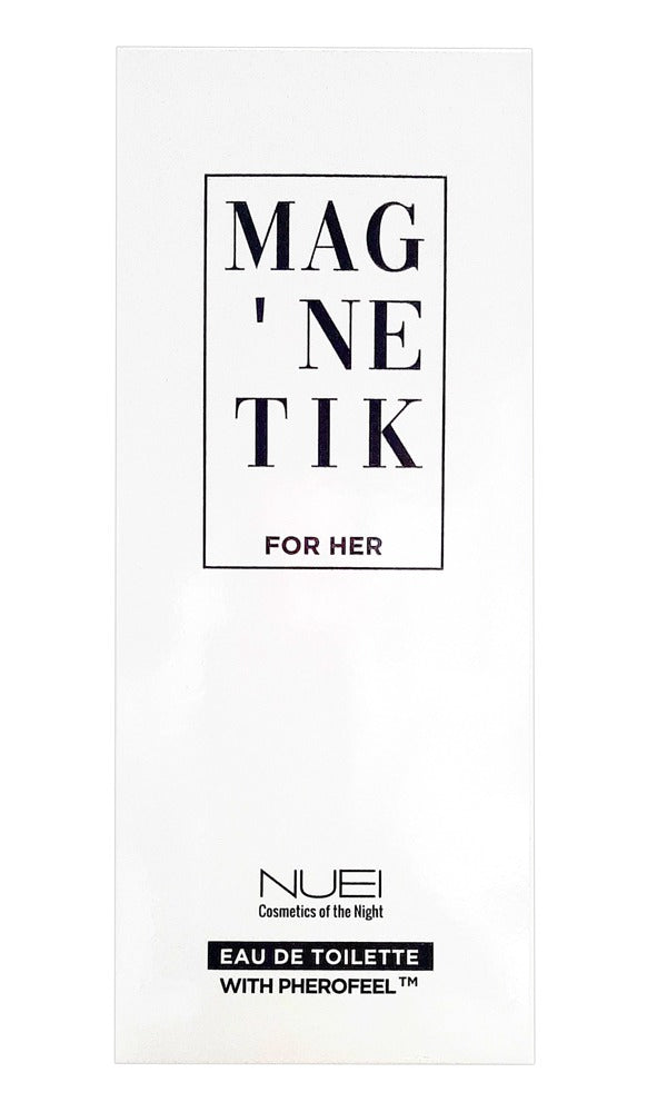 Perfume Mag'netik for Her by NUEI with long-lasting floral fragrance and sweet fruity notes designed for seduction. Contains Pherofeel to enhance feminine appeal and seduce the opposite sex. The vegan formula is free from parabens, sugar and gluten.