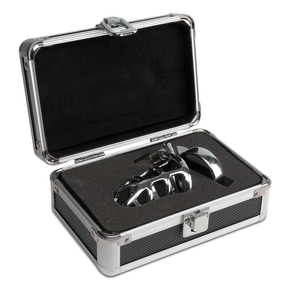 This chastity cage for the penis doesn't just look great, the forced chastity also feels amazing as well! It is perfect for the male anatomy and can be put on and taken off very easily. The flaccid penis gets placed inside the cage and the steel ring is placed over the testicles. The cage can also be locked with the included padlock and key. The person wearing the cage can go to the toilet and have a shower/bath without any problems. The cock cage is made out of high-quality stainless steel and polished by hand. It is delivered in a high-quality storage box.
