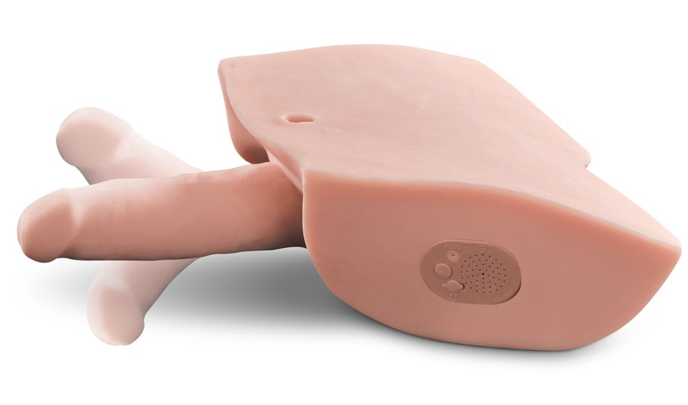 Not only does this masturbator have a hot backside that just wants to be grabbed, but it also has a realistic penis and testicles that want to be played with because they are made out of very realistic Fanta Flesh material that warms up to body temperature. Just penetrate this masturbator and enjoy the dotted texture and vibrations in the pleasure canal. Penetrating the realistic material and the glans and veins feel very exciting. The masturbator gives an audible signal with its integrated hi-fi speaker with every thrust and the male voice thanks the user with hot dirty talk or tells them to be more powerful. The voice has 7 volumes but if the user wants to enjoy it more discreetly they can just plug the headphones into the aux socket. The penis is flexible for hot stroking and penetration fun. Includes a USB cable.