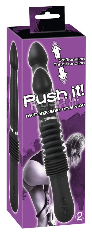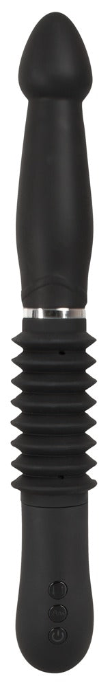 This black anal vibrator has a lot to offer – there is a lot of power hidden inside the bulging shaft which has a cone-shaped tip. The shaft is also tapered towards the tip. There are 7 vibration modes to choose from and a thrust function in 3 speeds. The thrust function lengthens the vibrator by up to 6 cm – again and again. The vibrations and thrust function can be adjusted at the push of a button and controlled separately. Furthermore, the vibrator can be recharged with the included USB cable.