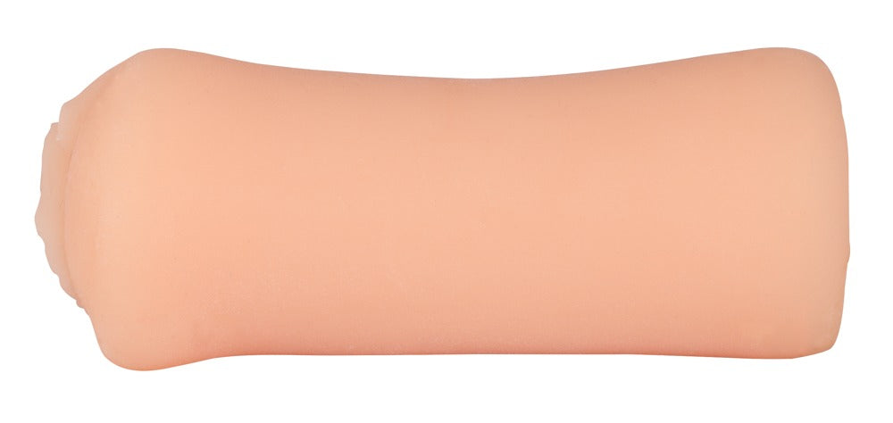 Small vagina masturbator with pronounced labia and clitoris. With inner nubs and grooves, both sides open. Highly flexible, adapts to the penis. Skin-coloured. Length approx. 11 cm. Smooth exterior surface. Material: TPR.