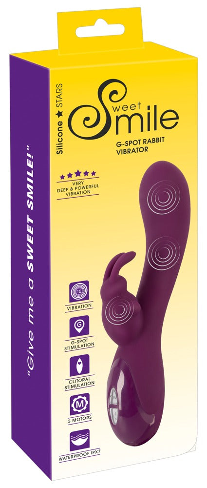 The Rabbit Vibe from Sweet Smile with its silky-smooth silicone cover will not only impress with its beautiful look and feel, but also with its capabilities. There are 15 vibration modes hidden within the curved shaft and inside the clitoris bunny to simultaneously pleasure vagina, G-spot and clitoris to the fullest.