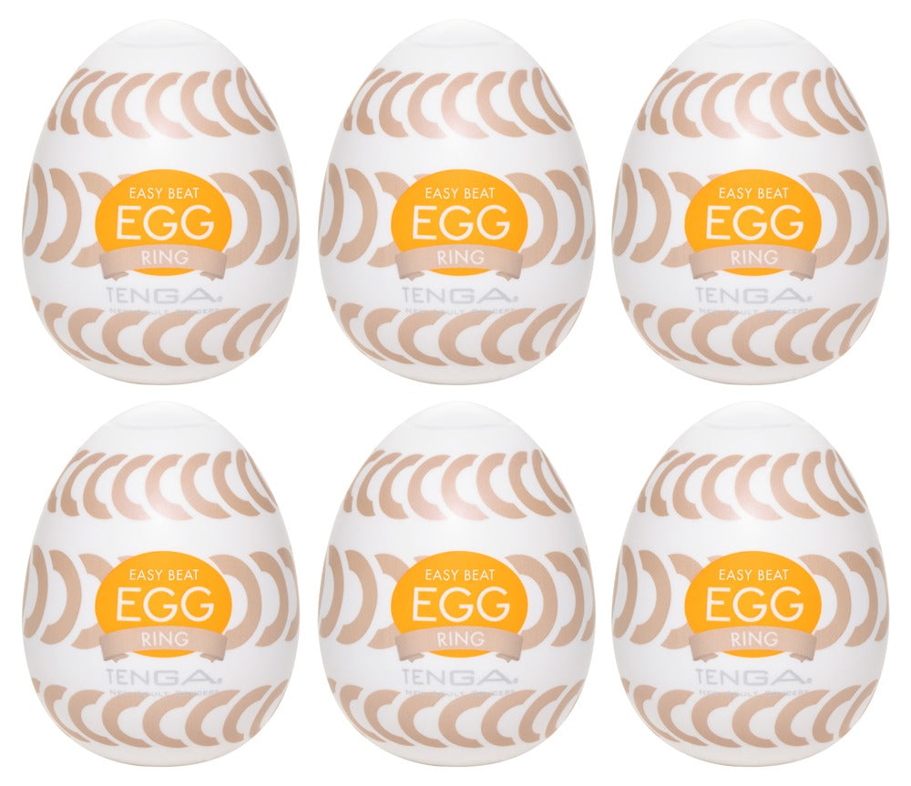 The compact, disposable masturbator Egg Ring from TENGA has a stimulating grooved ring texture inside. The very flexible masturbator sleeve is inside the egg-shaped case and can be used for a hand job with the included lubricant.