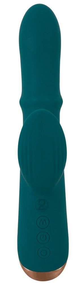 The easy-to-use Thumping Rabbit Vibrator with Moving Ring from You2Toys stimulates two pleasure zones simultaneously! The first is inside the vagina with intense vibrations and the massage ring (moving ring) that moves up and down. And on the outside, the clitoris with dynamic thumping pulses. Double pleasure for double climaxes!